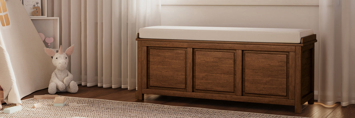 • Open Top Storage Bench: Effortless access to 4 cu. ft. of interior storage space. These benches include a removable decorative tray and sturdy soft-close hinges for smooth, quiet operation and added safety.